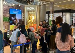大型路展於雅加達中央公園購物中心(Central Park Mall)舉行。美高梅的展位設計富有東南亞崇尚自然的特色,中央設置以公司的象徵金獅為主題的扭蛋機,而美高梅吉祥物善獅Leo在場與觀眾互動,帶動現場氣氛。觀眾亦踴躍參與扭蛋遊戲,豐富奬品包括美高梅酒店住宿優惠和精美紀念品等。是次送出的住宿優惠附贈輕軌通和美高梅「澳門海上遊」船票,旨在聯乘「文旅+觀光+交通」創意設計的「媽閣CityWalk路線」,推廣澳門多元、深厚的歷史文化底蘊,展示澳門作為世界旅遊休閒中心的實力。