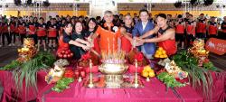 美高梅日前假南灣湖水上活動中心,舉行一年一度的龍舟隊下水禮,一眾管理層為即將競渡「2024澳門國際龍舟賽」的金獅健兒打氣。今年,美高梅龍舟隊共有55位團隊成員出賽,當中近九成五為本地僱員,將分別組成六個隊伍,挑戰四項公開組和女子組的標準龍及小龍賽事。